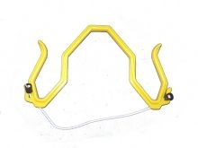 The restrainer is a quick and cheap way of restraining livestock without causing any discomfort. They can even feed with it. Simply put the legs in the hook ends of the restrainer with top of restrainer around the top of the neck.