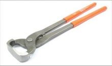 Forged steel hoof nipper with a flat head, with hardened flush cyut type jaws. Cushioned grip handles. 36cm long. Ideal for equine or cattle hoof care.